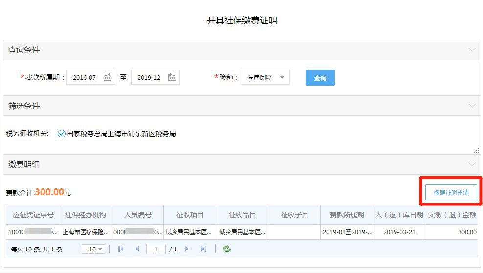 (五)在“缴费明细”模块中,点击“缴费证明申请”;