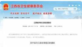 - 随着5月份中央发布全面开放三胎政策,各地也开始纷纷相应,江西省于8月13日发布实施三胎登记措施,详情见通知全文: 省卫生健康委印发《关于实行三孩生育登记的通知》,从8月......