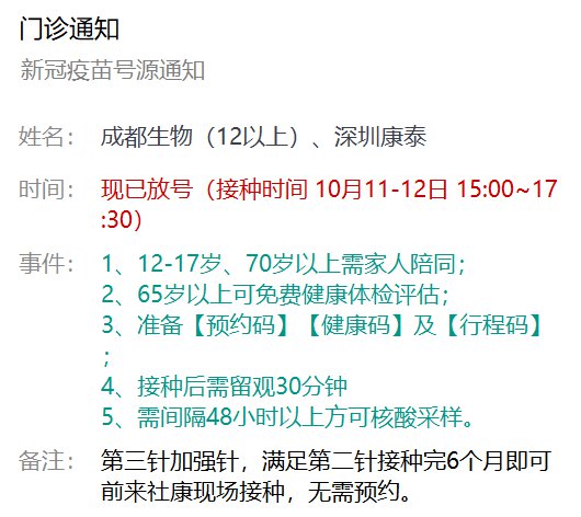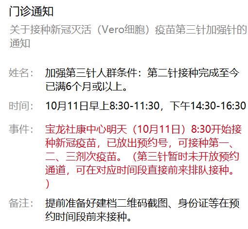 ②由于目前疾控尚未开通预约功能,有需要的、并满足180天以上条件的,在社康新冠疫苗接种时间里,可以直接来社康免预约,接种第三剂新冠疫苗加强针。