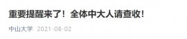 2021中山大学发布最新秋季师生返校的最近通告,(附通知全文) 2021-08-06 23:13:332021中山大学发布最新秋季师生返校的最近通告,(附通知全文) 为保障广大师生员工身体健康及生命安全,根据属地政府的疫情防控政策,现通知如下: 一、 非必要不离省 。在校师...